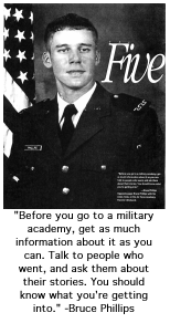 Some of his friends were a little skeptical about his choosing a military academy. "They laughed," Phillips says, explaining that, "I'm usually the type to talk back, and I don't take well to authority.